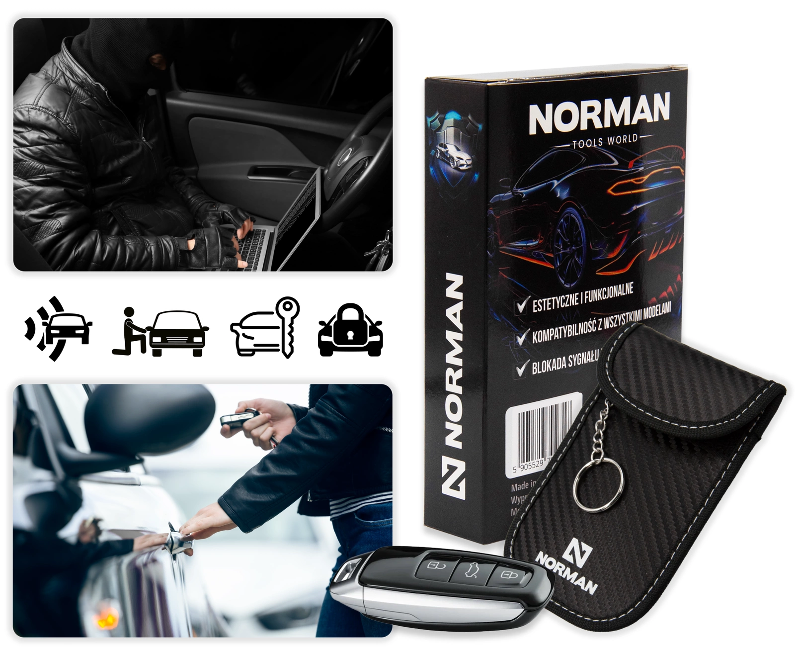 Szukasz skutecznego sposobu na zapobieżenie kradzieży samochodu za pomocą ataku metodą „na walizkę” ? Marka NORMAN ma dla Ciebie doskonałe rozwiązanie - etui antykradzieżowe, które skutecznie blokuje sygnał radiowy klucza samochodowego, uniemożliwiając nieuprawnionym osobom dostęp do Twojego pojazdu!